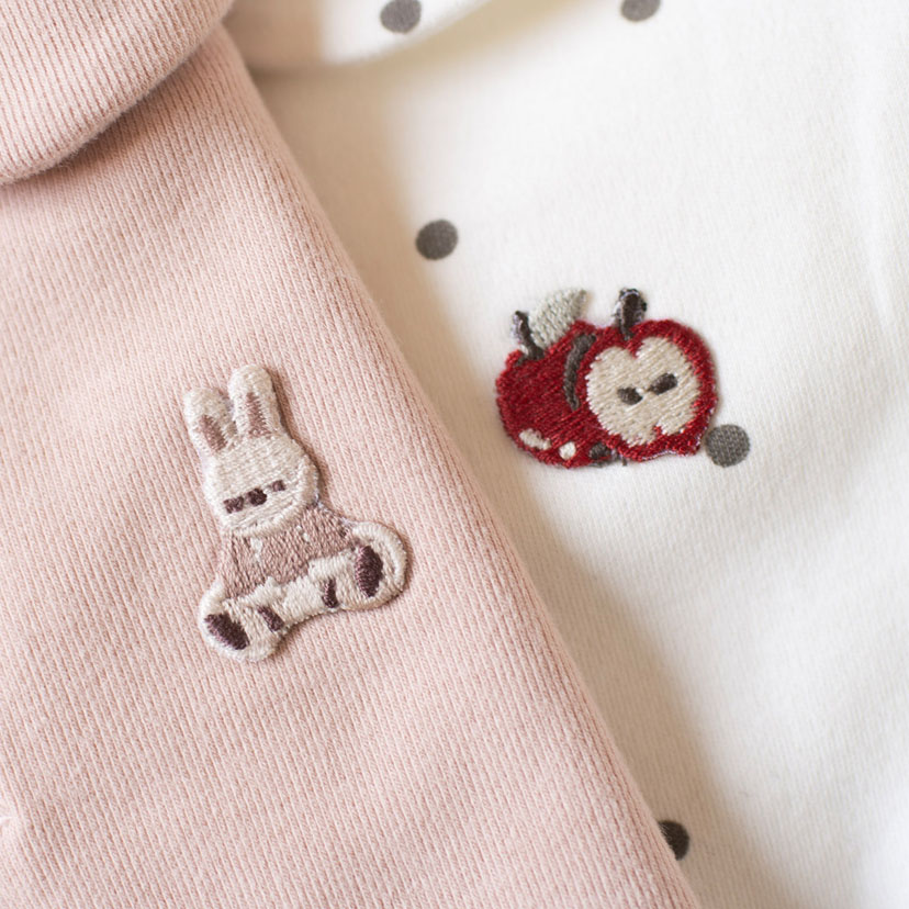股ぐりはスナップボタンで開けられるので、着せたままオムツ替えができます。